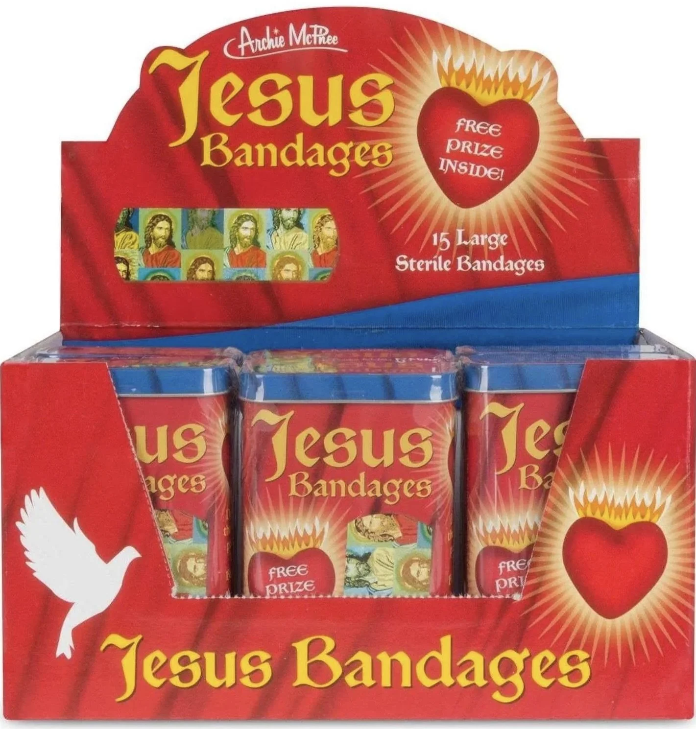 While in a novelty shop recently, I discovered a tin of Jesus Band-Aids. It would have been a great visual aid during my brief tenure as a religious ed instructor. The lesson would be about Jesus being the Great Physician or Jehovah Rapha – The God Who Heals. I wasn’t sure what use I had for them but knew it was one of those ‘must haves,’ and bought a couple of tins.