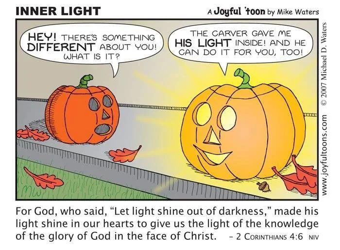 A lady had recently been baptized. One of her co-workers asked her what it was like to be a Christian. She was caught off guard and didn’t know how to answer, but when she looked up, she saw a jack-o-lantern on the desk and answered: “It’s like being a pumpkin.”