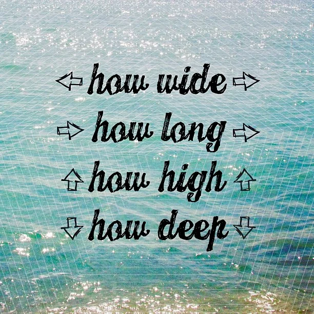And I pray that you, being rooted and established in love, may have power, together with all the Lord's holy people, to grasp how wide and long and high and deep is the love of Christ, and to know this love that surpasses knowledge-that you may be filled to the measure of all the fullness of God (Ephesians 3:17-19).