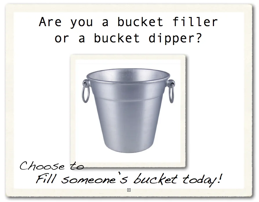 Each of us has an invisible bucket. It is constantly emptied or filled, depending on what others say or do to us. When our bucket is full, we feel great. When it’s empty, we feel awful.