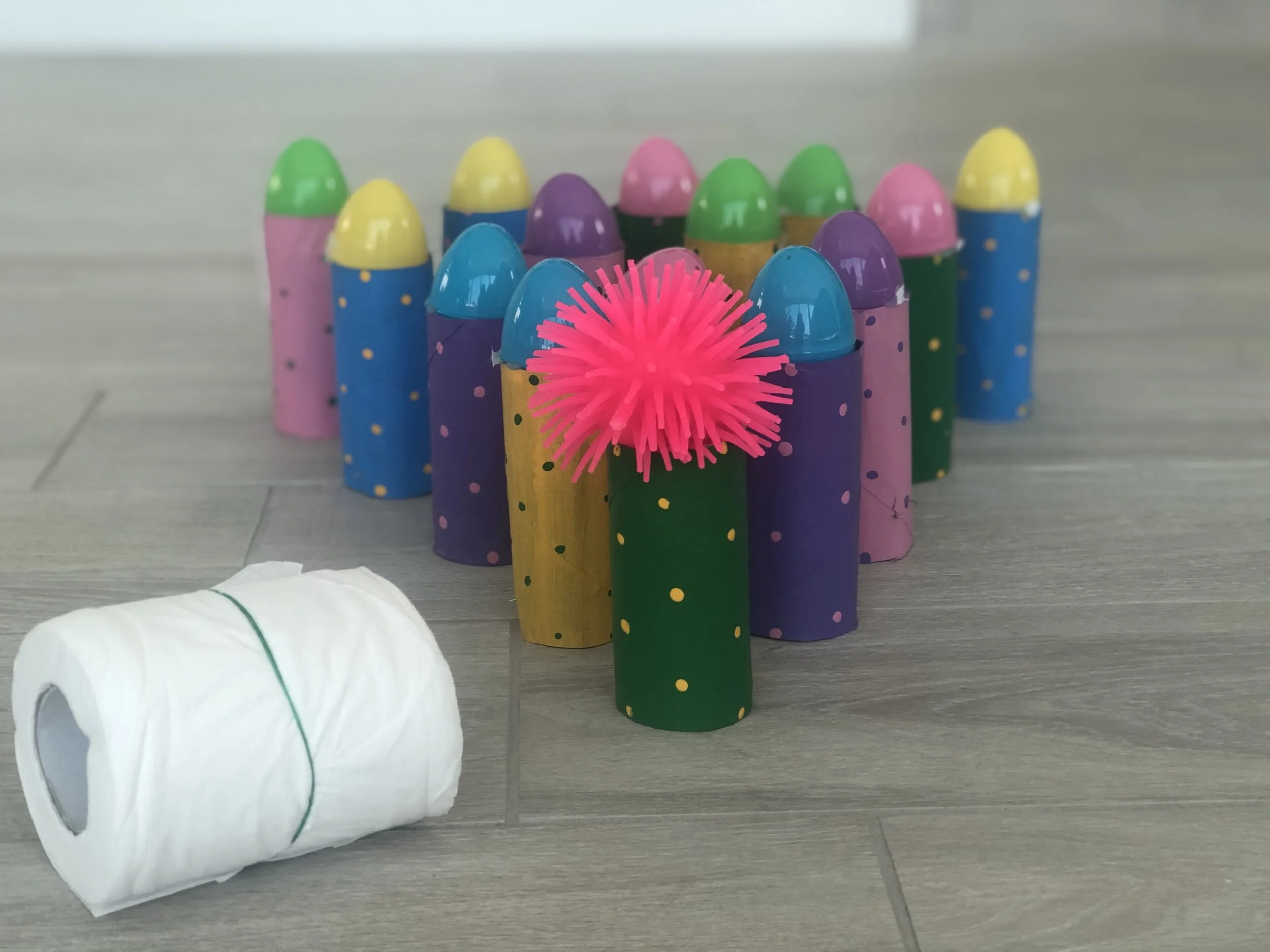 P.S. Not one to waste a good craft, I repurposed my fancy toilet paper rolls into pins for COVID bowling last night.