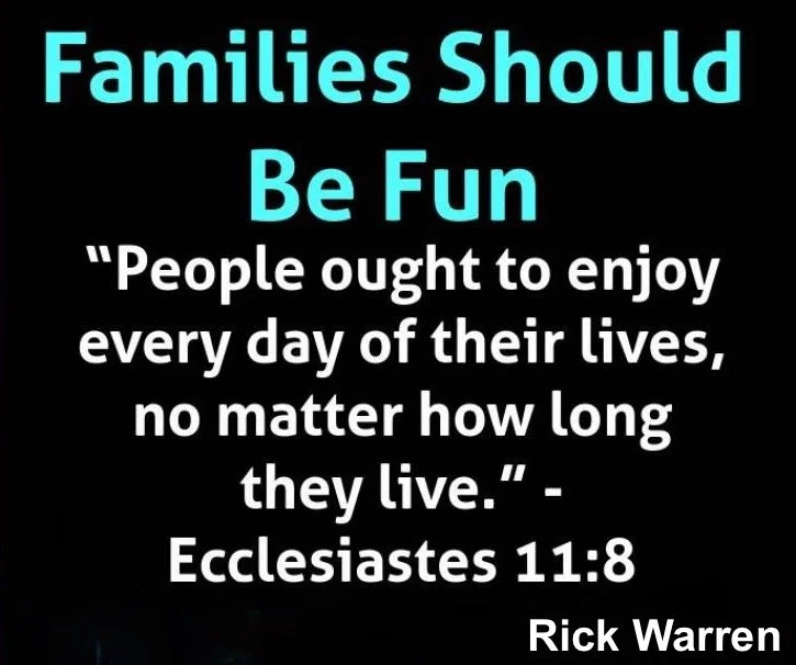 During one of those walks I listened to a Rick Warren devotional about creating awesome families. He revealed the top quality that all awesome families share: namely playfulness. Families that play together tend to have better relationships.